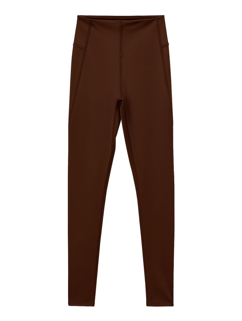 A calça Anna é confeccionado em malha de poliamida e possui comprimento longo.