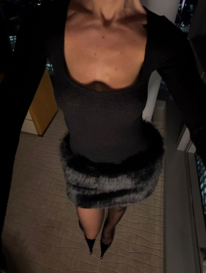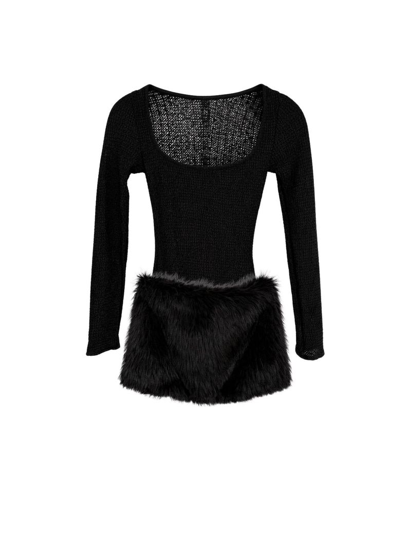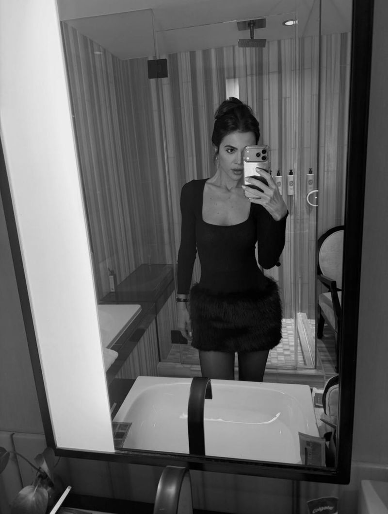 A mini saia é o grande destaque do conjunto. Com pala toda em pelo, ela traz um toque moderno e fashion ao look. A cintura baixa permite ajustar a altura da saia da forma que você se sentir mais confortável, criando diferentes propostas de styling.