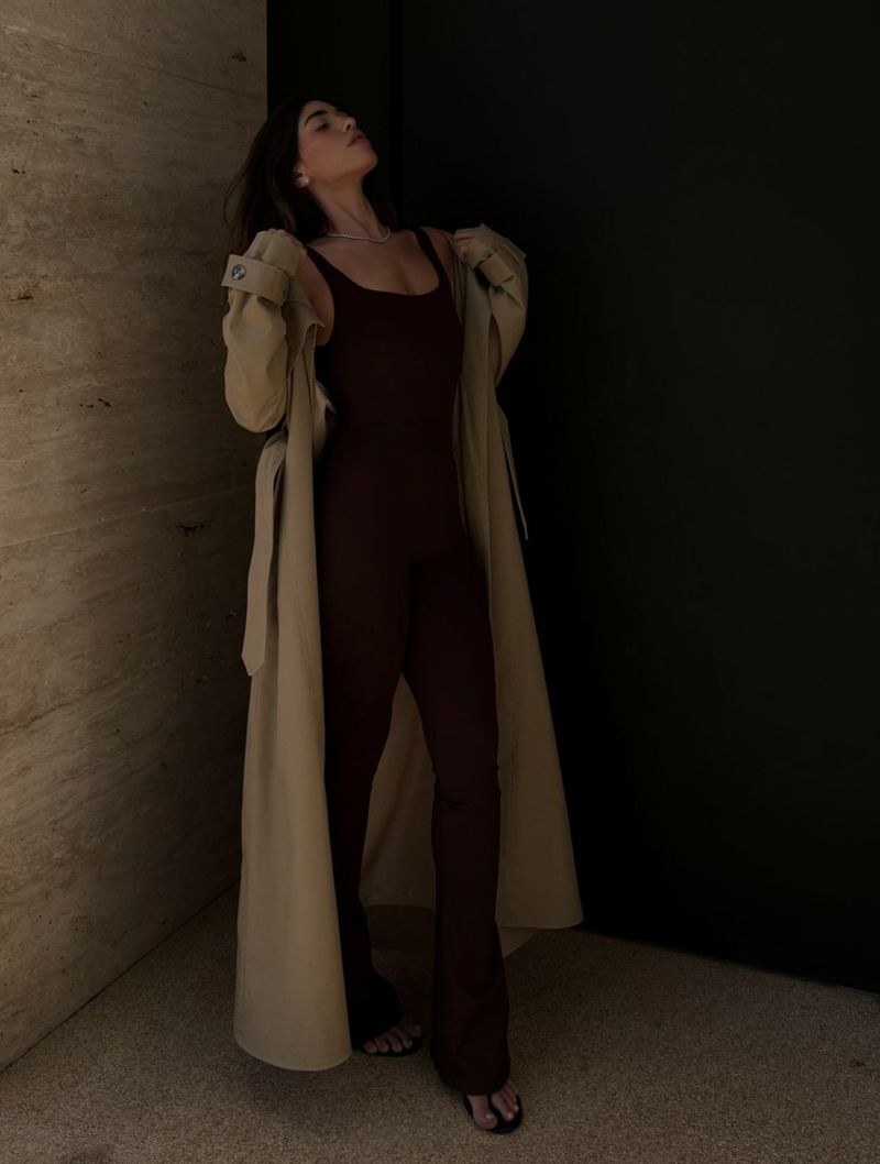A peça desce ajustada ao corpo e termina com um leve flare na barra, detalhe que alonga a silhueta e traz um toque fashion.