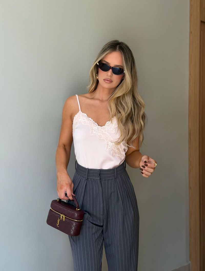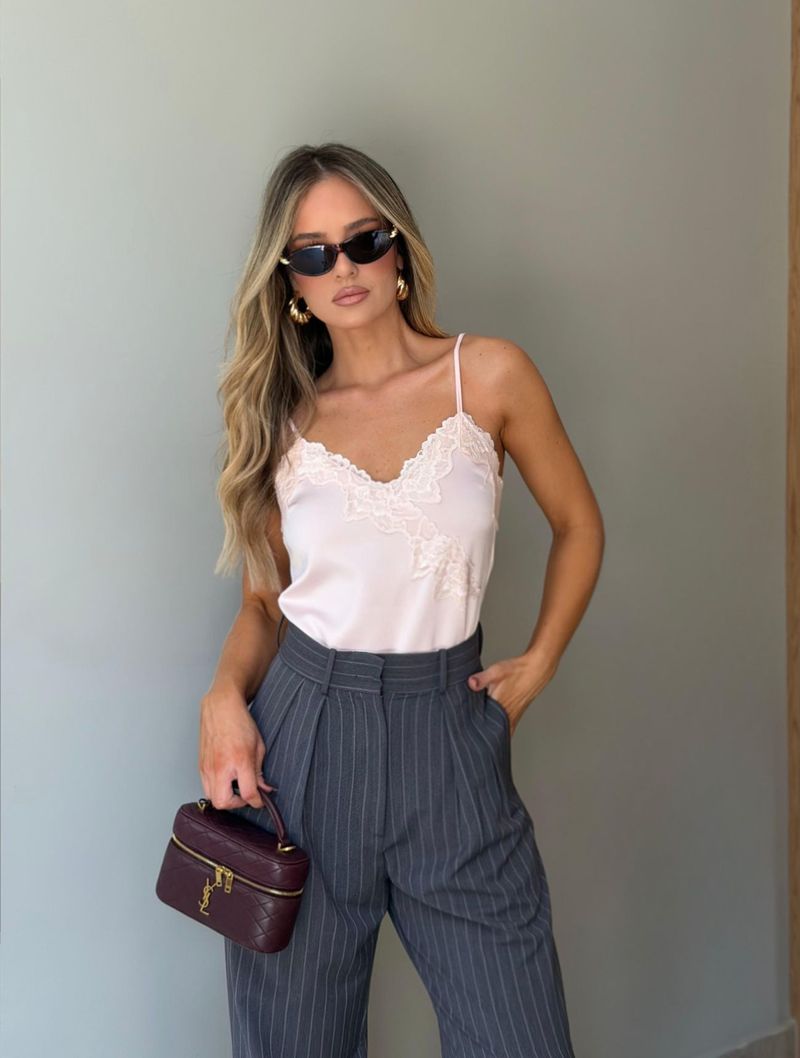 #cloudetips: Uma peça extremamente versátil. Fica linda combinada com calças de alfaiataria, jeans ou saias, criando produções elegantes e modernas para diferentes ocasiões. A mistura do acetinado com a renda traz um toque sofisticado que está super em alta.