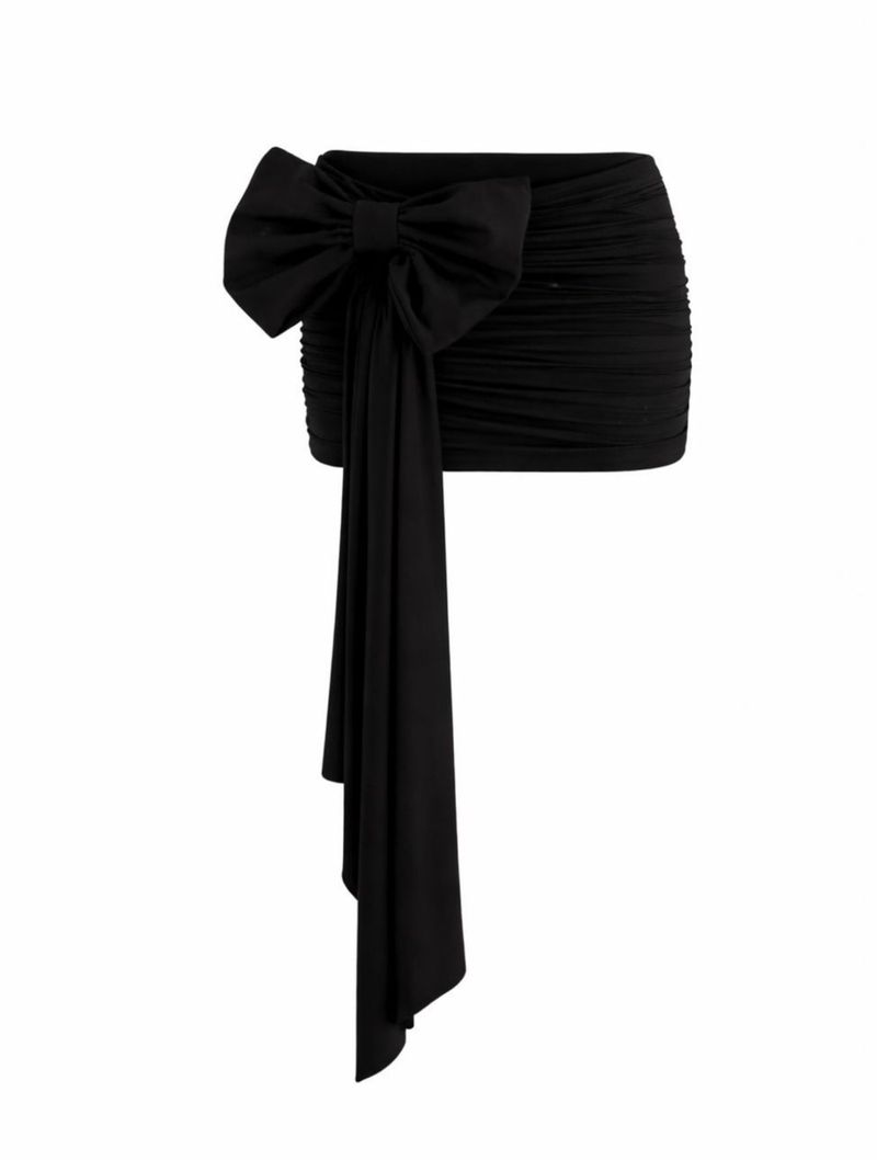 Confeccionada em jersey com elastano, a saia tem modelagem curta e caimento todo drapeado, que desenha a silhueta de forma bonita e confortável. O destaque fica por conta do detalhe frontal em laço com tricoline e da faixa assimétrica, que criam um visual atual.