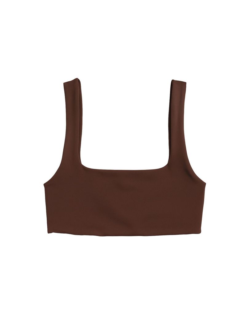 O top Bella é confeccionado em malha de poliamida e possui alças médias.